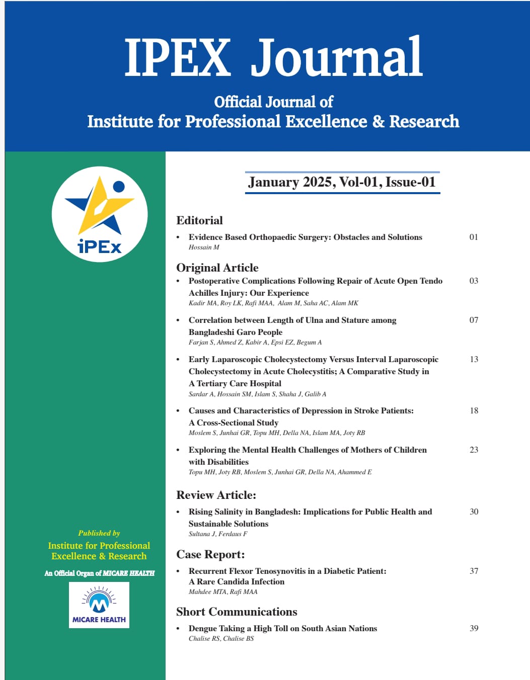 Institute for Professional Excellence and Research Journal (IPEXJ) aims to publish original articles, review articles, conference abstracts, letters to editor and case reports pertaining to clinical and surgical practice. The journal invites manuscripts of significant research findings from all fields of medical science. Any research study that prospectively influences the outcome of human health is welcome for publication in IPEXJ.